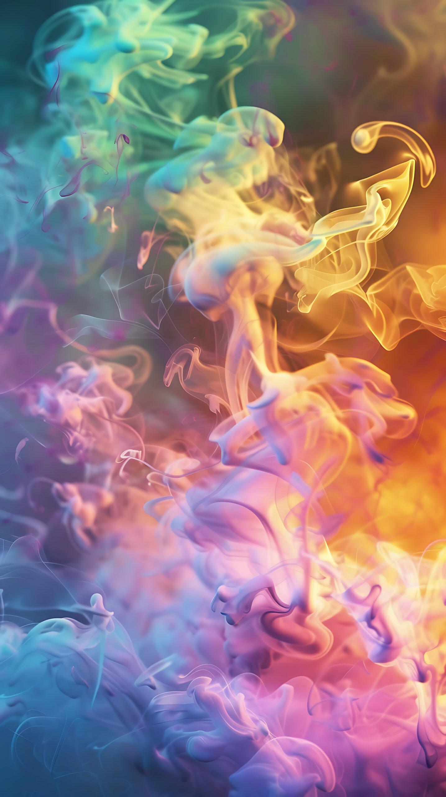 This artwork presents a mesmerizing swirl of fluid abstract color blending soft pastels and vibrant neons into a dreamy ethereal composition. Waves of turquoise aqua blue blush pink coral and golden yellow flow across the canvas in a liquid dance creating the illusion of motion and depth.